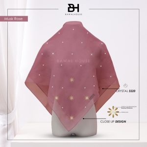 Soft on the fabric. But it can still provide a stunning awning effect. The choice of fabric from Japanese voile that can make the wearer look elegant and stylish. The fabric material is very easy to style and the addition of 70 stunning Swarovski crystal dots that can definitely add to the wearer’s radiance. The arrangement of 70 dots swarovski crystals that are beautifully arranged and produce a V shape at the end is sure to captivate the hearts and eyes of the girl.